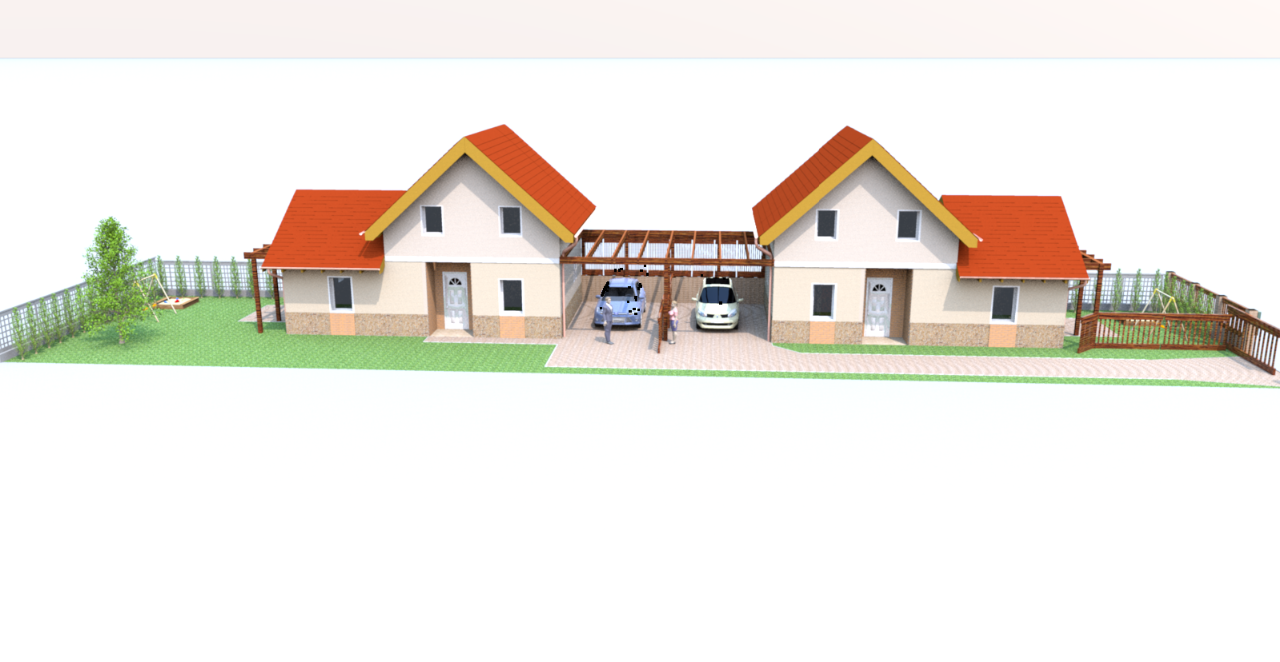 A két épület közötti résznél elválasztó kerítés készül 1db tolók kapuval. A toló kapu mérete 340X120cm lesz, ami deszkaborítást kap. A gépkocsi beállók és a két első terasz nyitott, pergola rendszerű fa gerendázatból készülnek. A faszerkezet felülről borítást nem kaphat. Milesi lazúrral lesznek kezelve két rétegben, mogyoró színben.